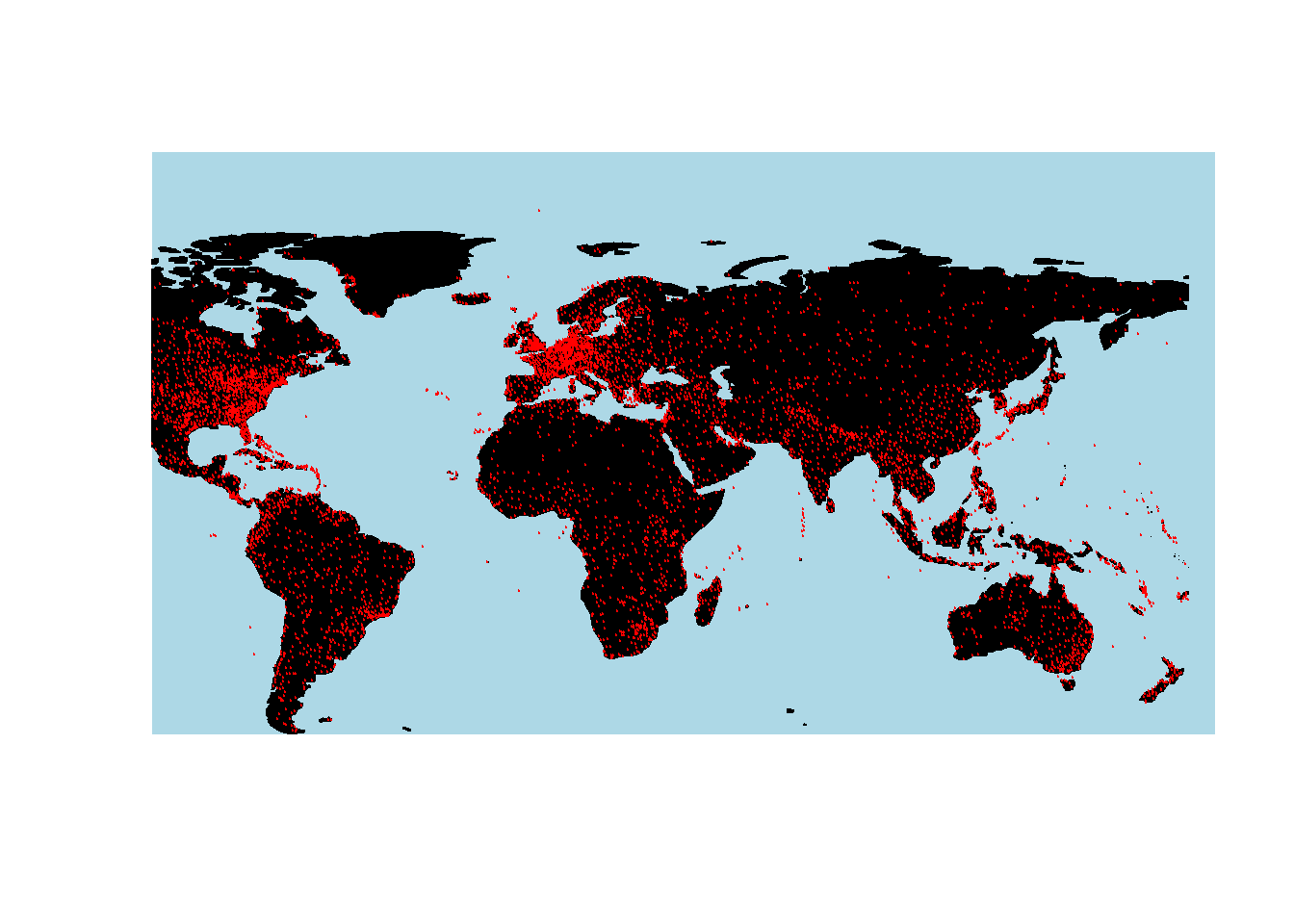 We load the airports data set which contains the longitude and latitude of airports across the world. We will then use this data to show the locations of airports across the globe.